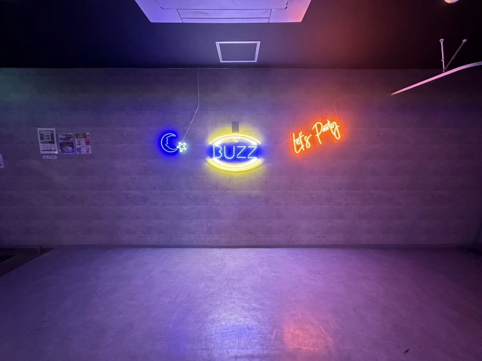 LEDネオンライトが壁に掛けられているので撮影などにも適しています。
