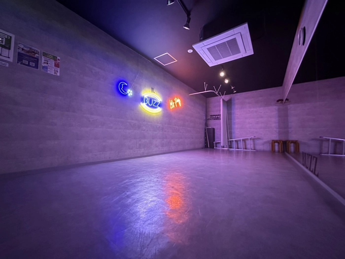 【ネオンサイン導入】人気ダンサーも使用💡鏡面約8m横に広めなスタジオ!大人数でのリハーサルやレッスン等でも大好評✨