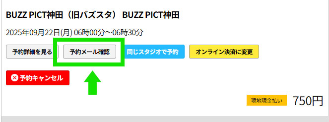 ③ スタジオ「BUZZ神田」をタップ