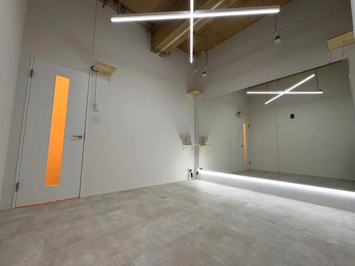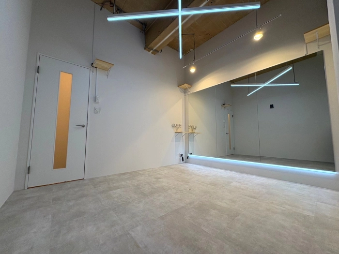 スタジオの入口前で靴を脱いでいただき、電気を点けてお使いください。受付での手続きなどは一切ございません。