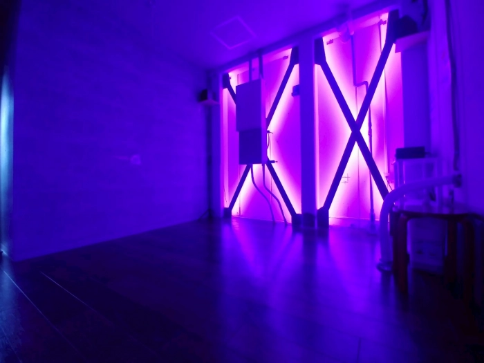 スタジオの入口前で靴を脱いでいただき、電気を点けてお使いください。受付での手続きなどは一切ございません。