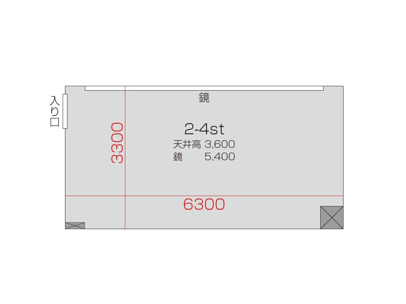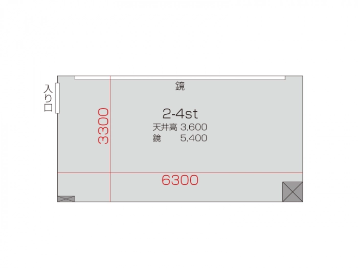 広さ 18.0㎡ 天井高 3.6m 鏡 5.4m