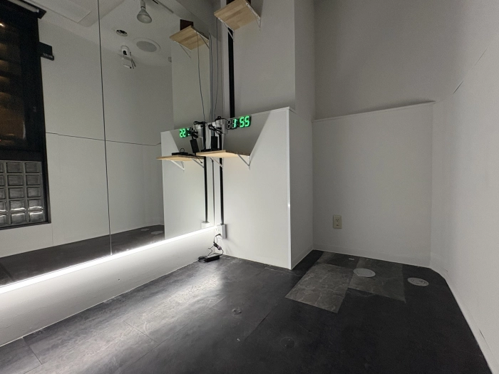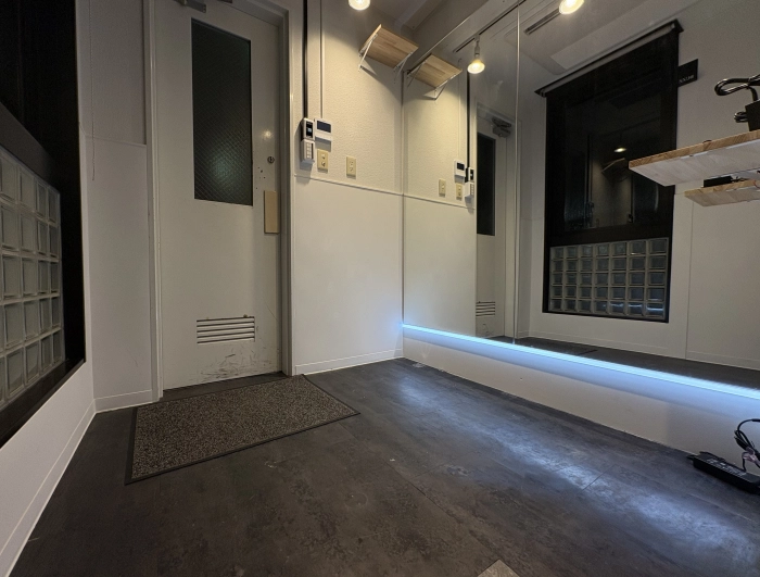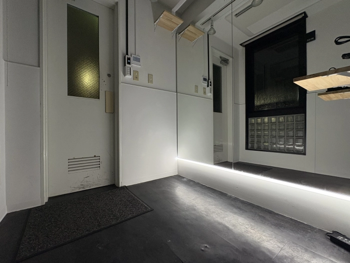 スタジオの入口前で靴を脱いでいただき、電気を点けてお使いください。受付での手続きなどは一切ございません。