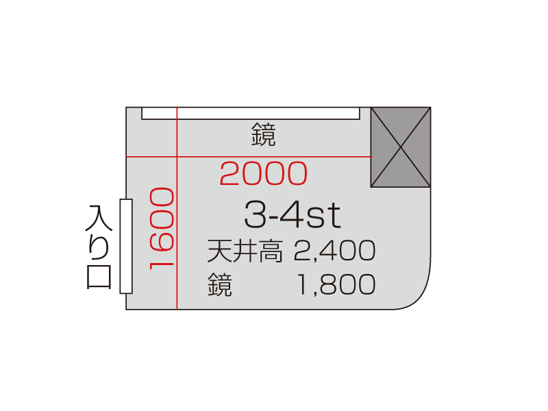 広さ 5.4㎡ 天井高 2.4m 鏡 1.8m