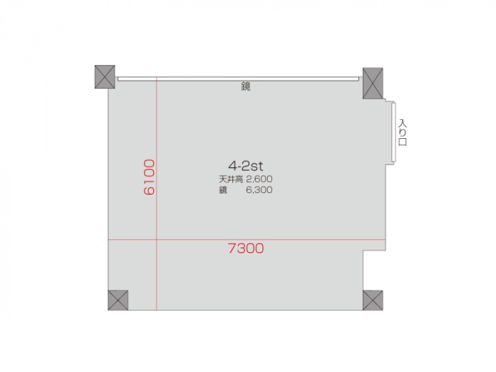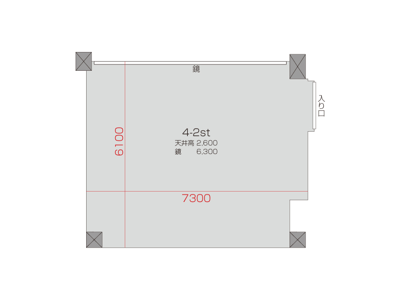 広さ 43.0㎡ 天井高 2.6m 鏡 6.3m
