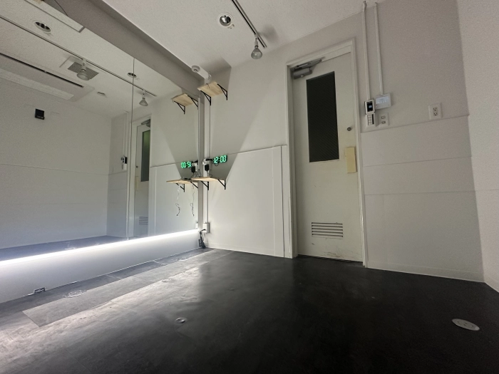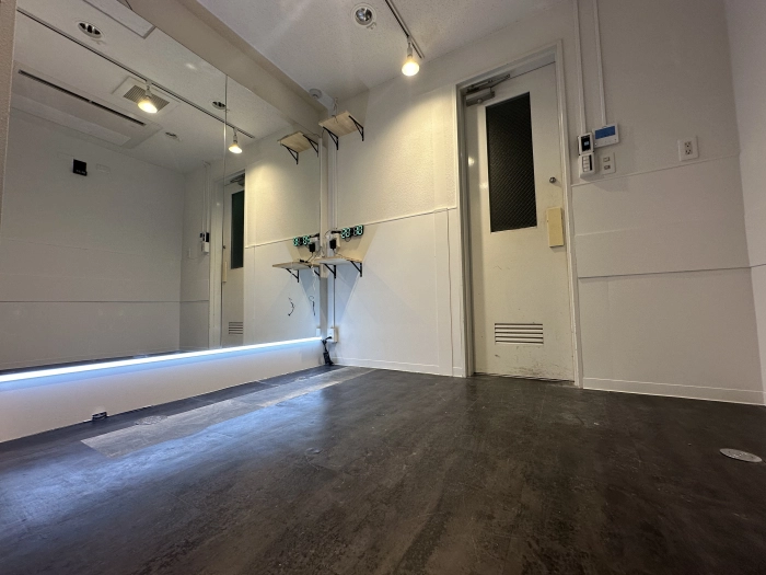 スタジオの入口前で靴を脱いでいただき、電気を点けてお使いください。受付での手続きなどは一切ございません。
