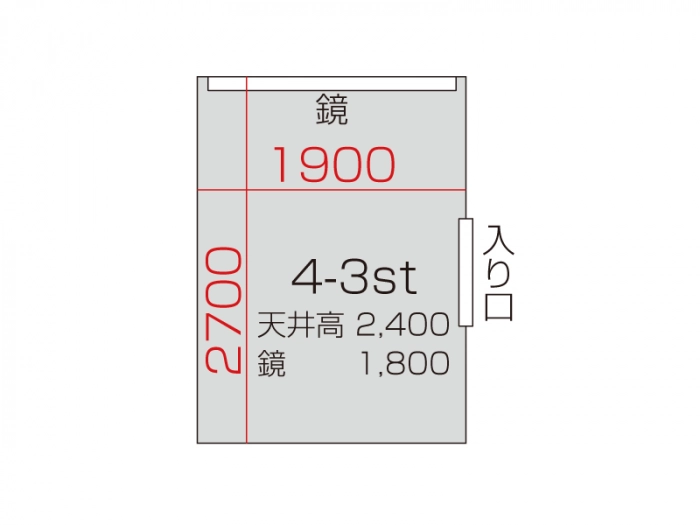 広さ 6.8㎡ 天井高 2.4m 鏡 1.8m