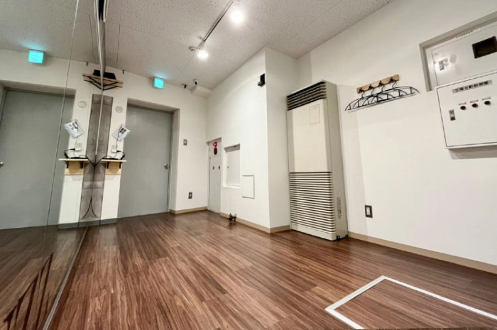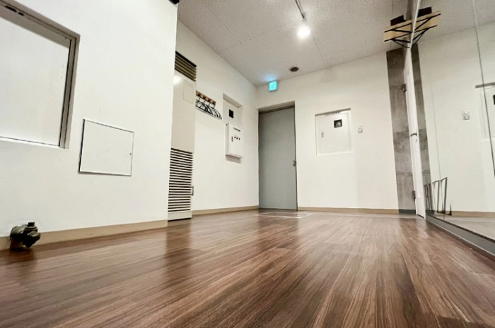 スタジオの入口前で靴を脱いでいただき、電気を点けてお使いください。受付での手続きなどは一切ございません。