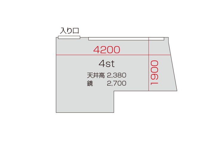広さ 8.0㎡ 天井高 2.38m 鏡 2.7m