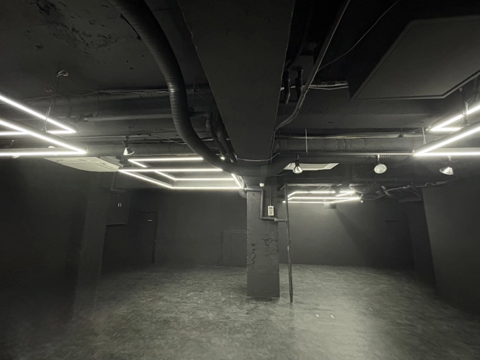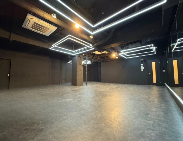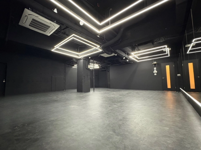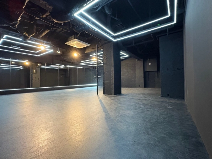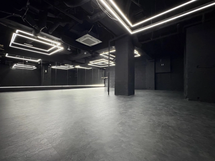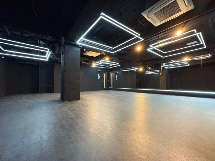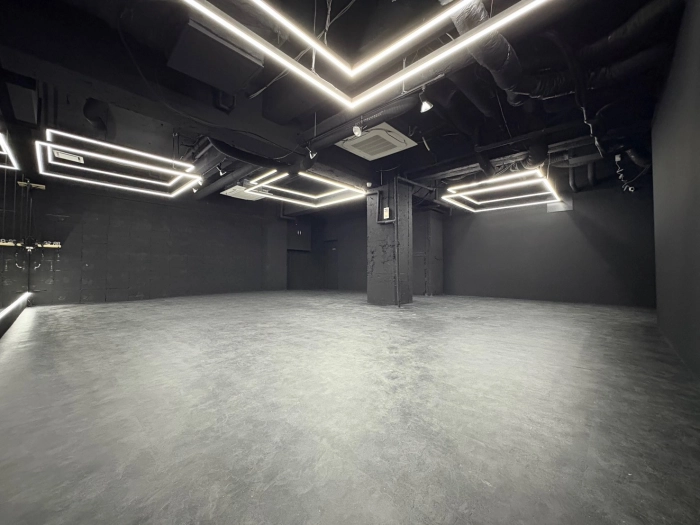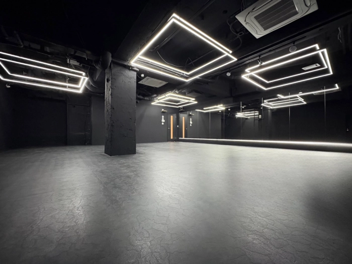 黒を基調とした広々空間に、天井のLEDが印象的なデザイン。