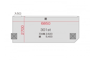 広さ 20.0㎡ 天井高 2.62m 鏡 5.4m