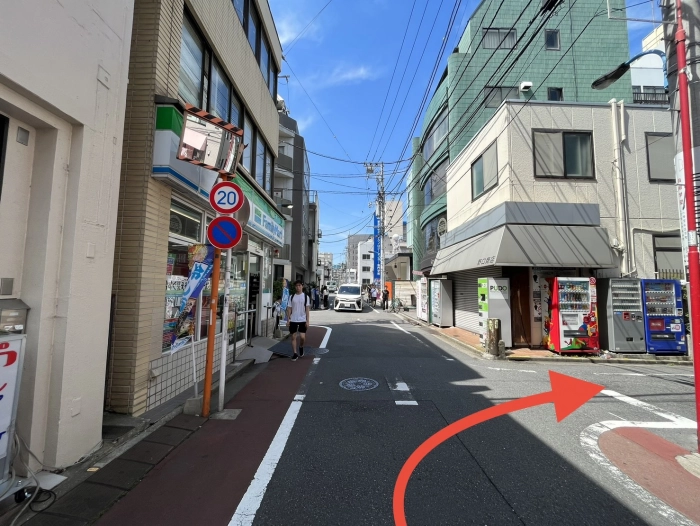 ファミリーマートの前の三叉路を右に曲がる。