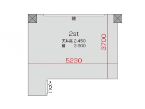広さ 18.5㎡ 天井高 2.45m 鏡 3.6m
