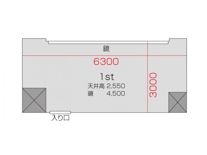 広さ 15.0㎡ 天井高 2.55m 鏡 4.5m