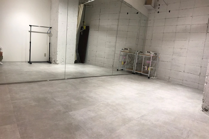 スタジオの入口前で靴を脱いでいただき、電気を点けてお使いください。受付での手続きなどは一切ございません。