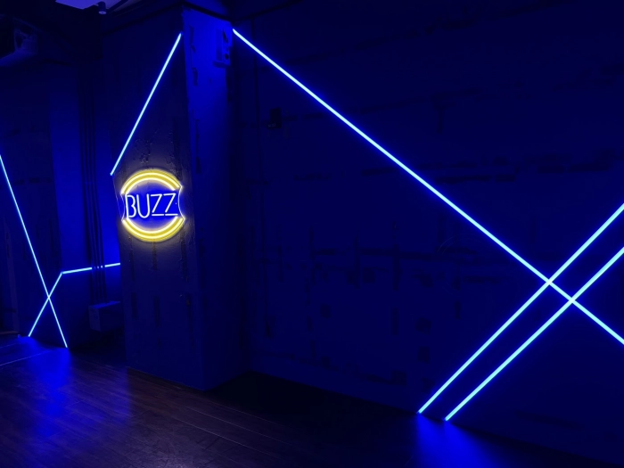 ブルーの壁×ブルーライトは相乗効果で近未来的なデザインに♪