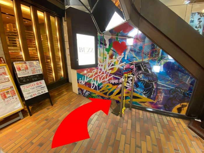 歩いて1分ほどで左手にSTUDIO BUZZ浦和があります。 地下へ降りる階段からお越しください。