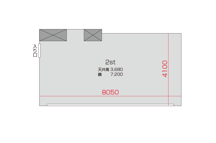 広さ 33.0㎡ 天井高 3.7m 鏡 8.0m