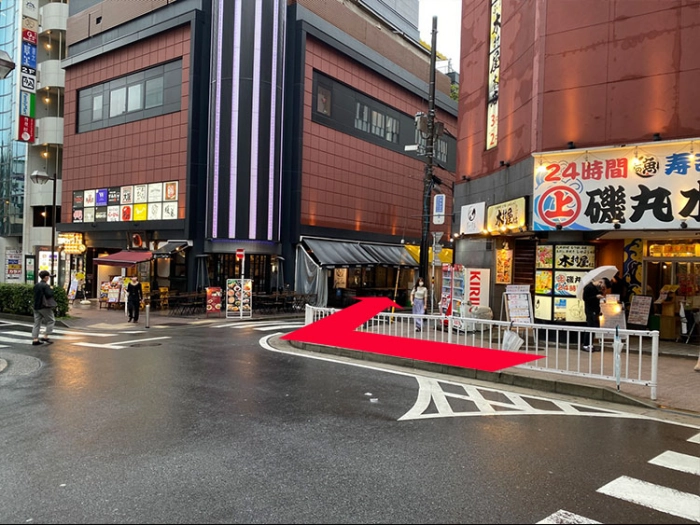 橋を超えると磯丸水産があるので右に曲がります。