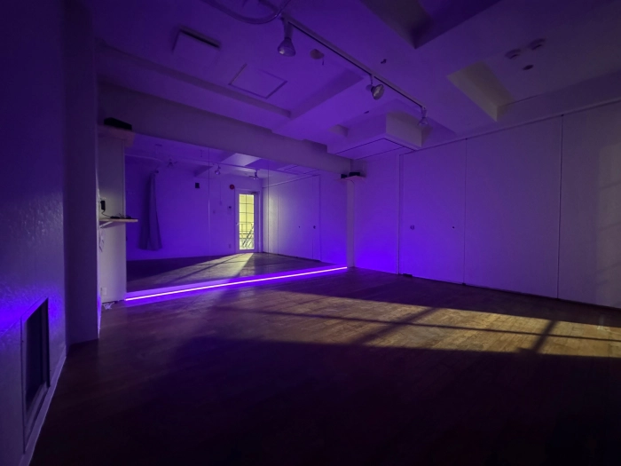 スタジオの入口前で靴を脱いでいただき、電気を点けてお使いください。受付での手続きなどは一切ございません。