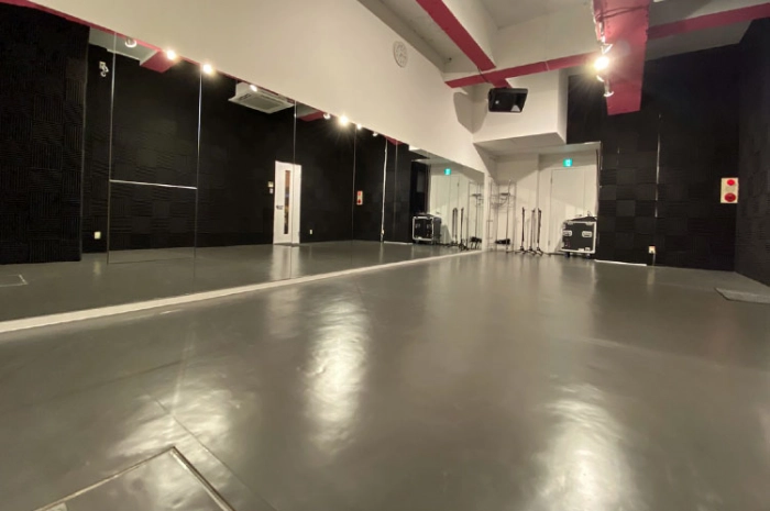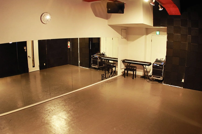 BUZZ代々木で最大のスタジオ。床はリノリウムを使用。リハーサルにおすすめのスタジオです。